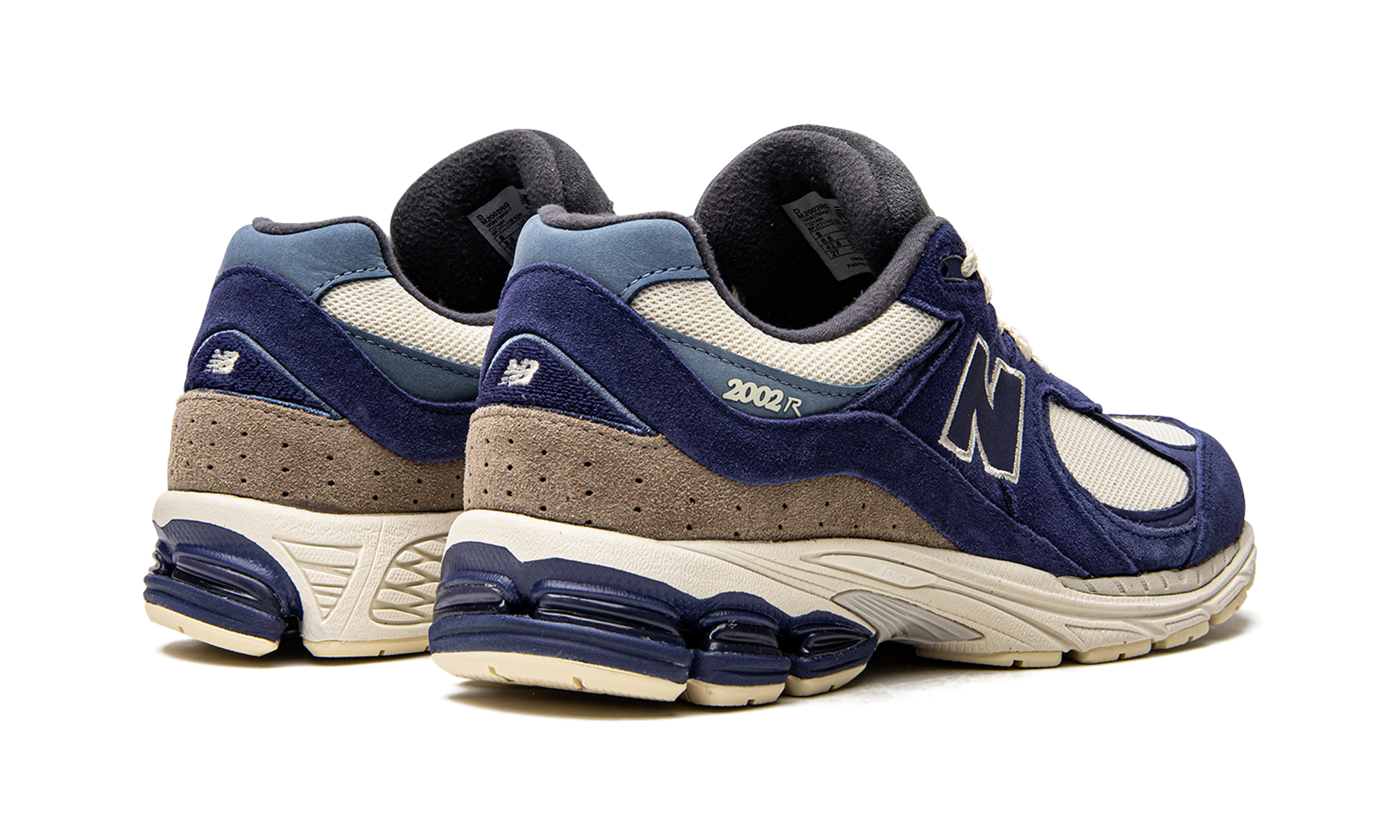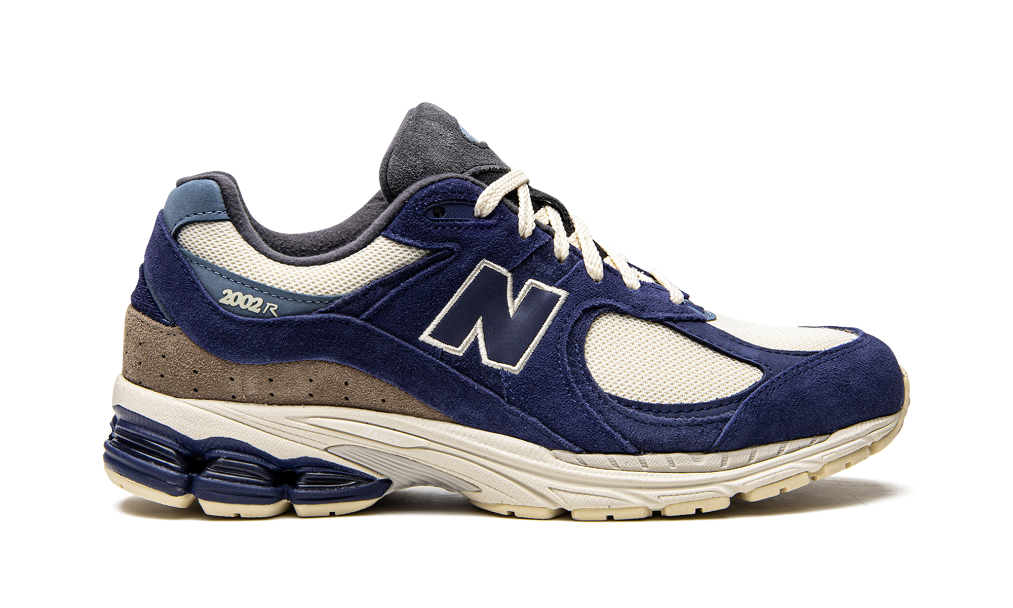 The New Balance 2002R "Night Tide" is another clean color of the retro running and lifestyle shoe that is part of the most popular styles in theon collection of New Balance shoes. The New Balance 2002R made its debut in 2010 as a running shoe before returning a few years later as a stretched lifestyle shoe. As concenters the design of the “Night Tide”, the shoe has a base in cream mesh with superpositionsons in navy blue suede. An overlayon in brown suede appears on the tallon. Under the feet, the midsole in cream foam dongives the shoe a resolutely vintage look.