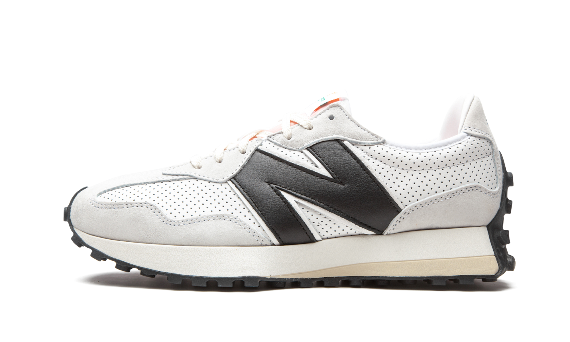 The Casablanca x New Balance 327 "White/Black" combines effortless elegance with sport heritage for this collaboration. Featuring an all-white stem with perforated leather and buttery suede panels, the shoe also wears an oversized "N" logoonborn in black contraste, pale orange tongue and black outsole. This pair and another green color mark the second time that the Parisian fashion buton and the New England shoe brand are associated with sont. The two colours Casablanca x New Balance 327 ont makes its debut at the Salonon Autumn/Winter 2020 of Casablanca in Paris.