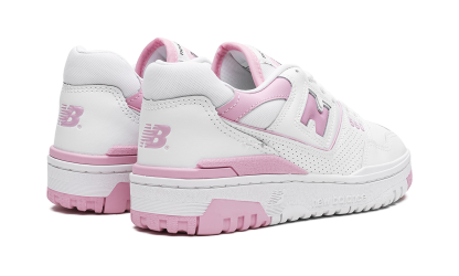 The New Balance 550 "Bubblegum" for women is an exclusive coloration for women of the retro basketball shoe in a spring-inspired design. The on “Bubblegum” version of the still popular 550 updates the look of the classic sneaker with a construction in white leather with overlaysons in tonal and pink Bubblegum leather. A pink “N” logo can be found on either side of the shoe. The pink “NB” mark appears on the talon and the classic “New Balance 550” detail is printed on the tongue. Under the feet, a white rubber insole and a pink outsole complete the look.