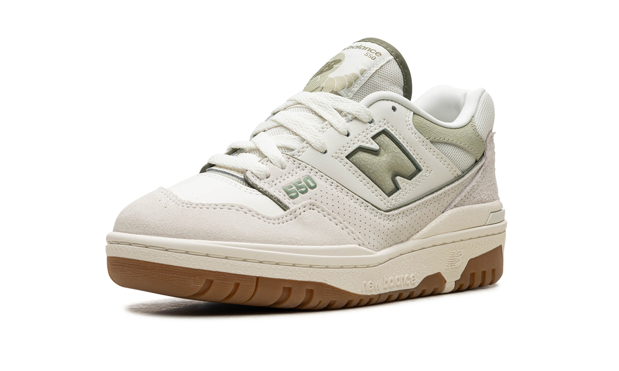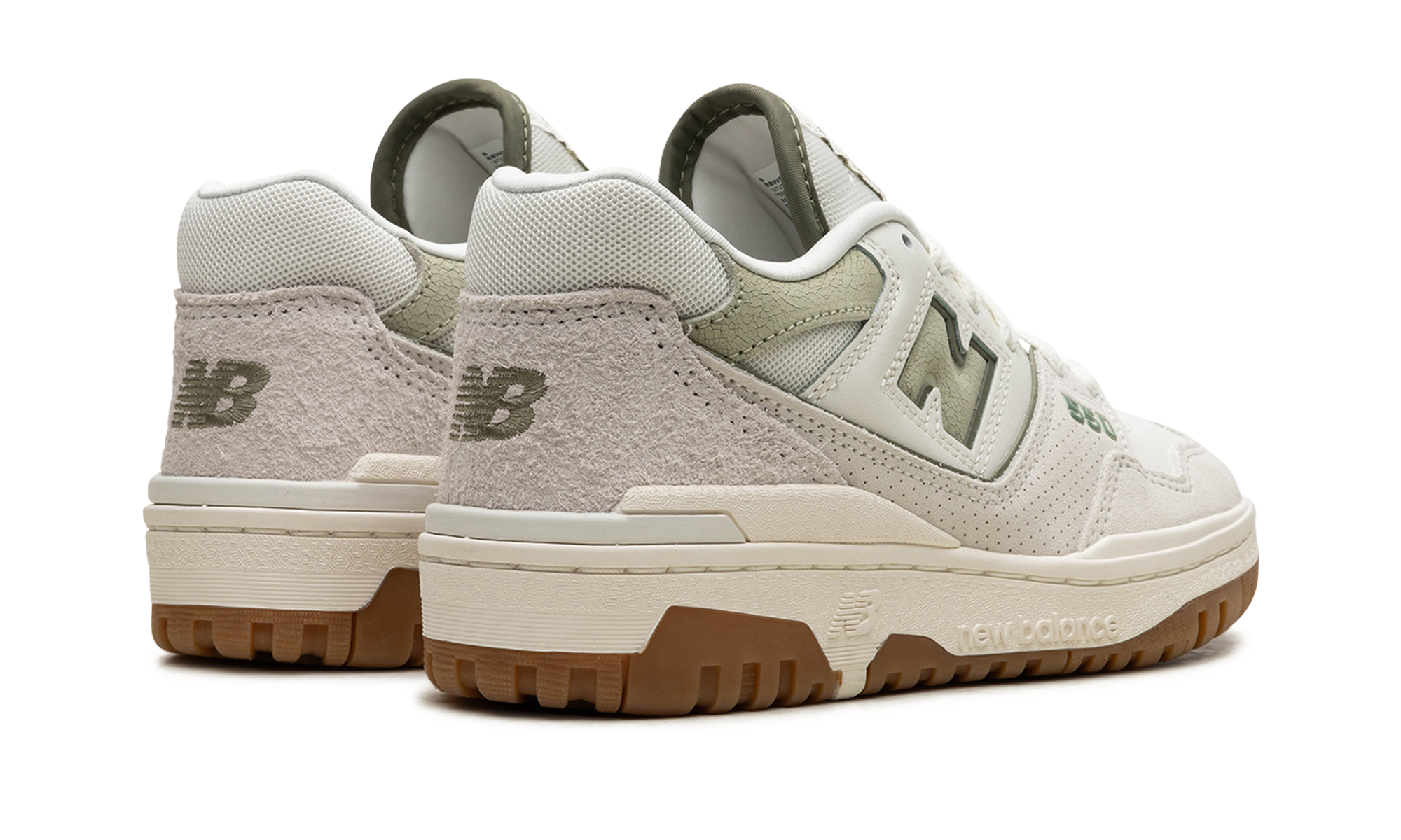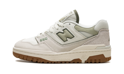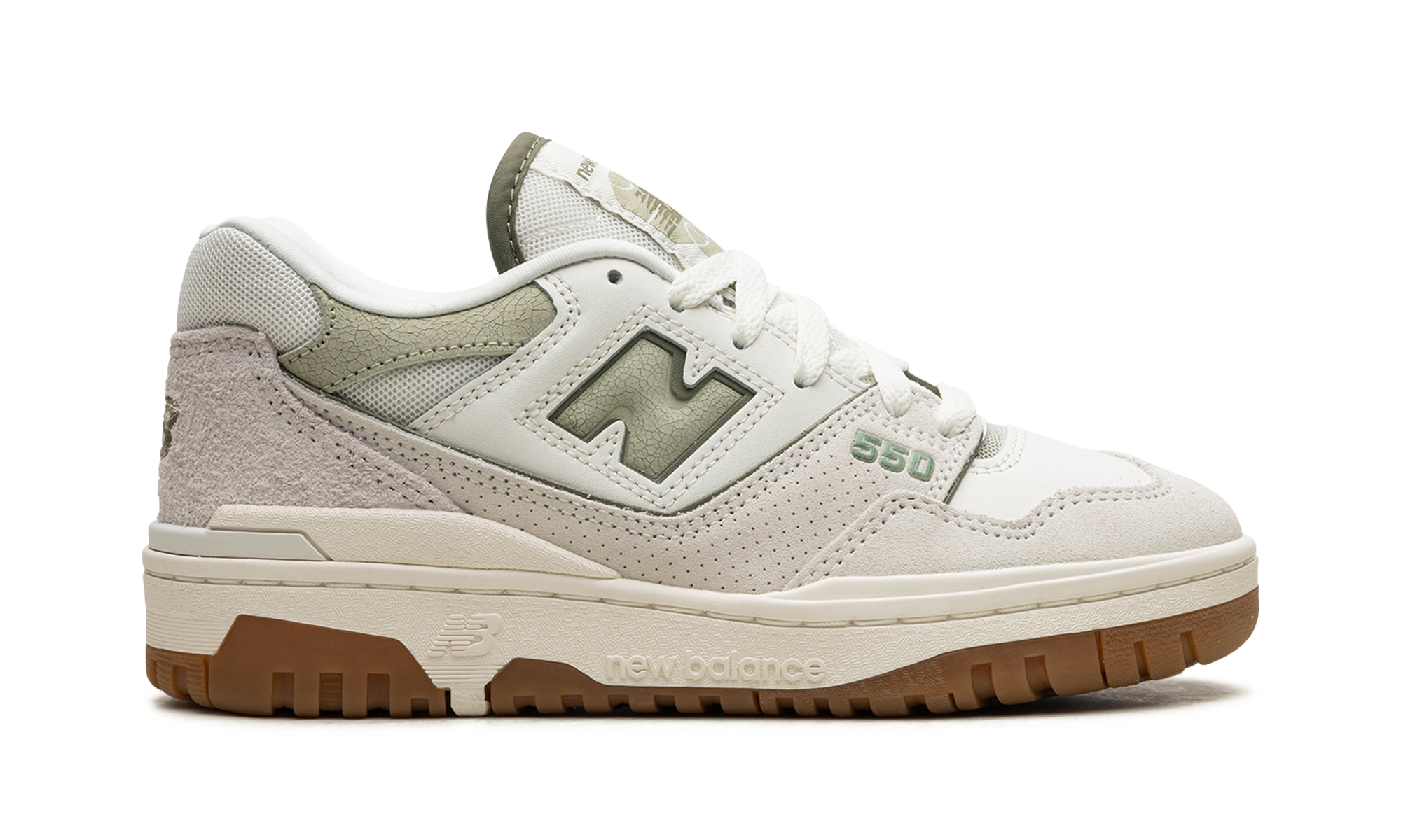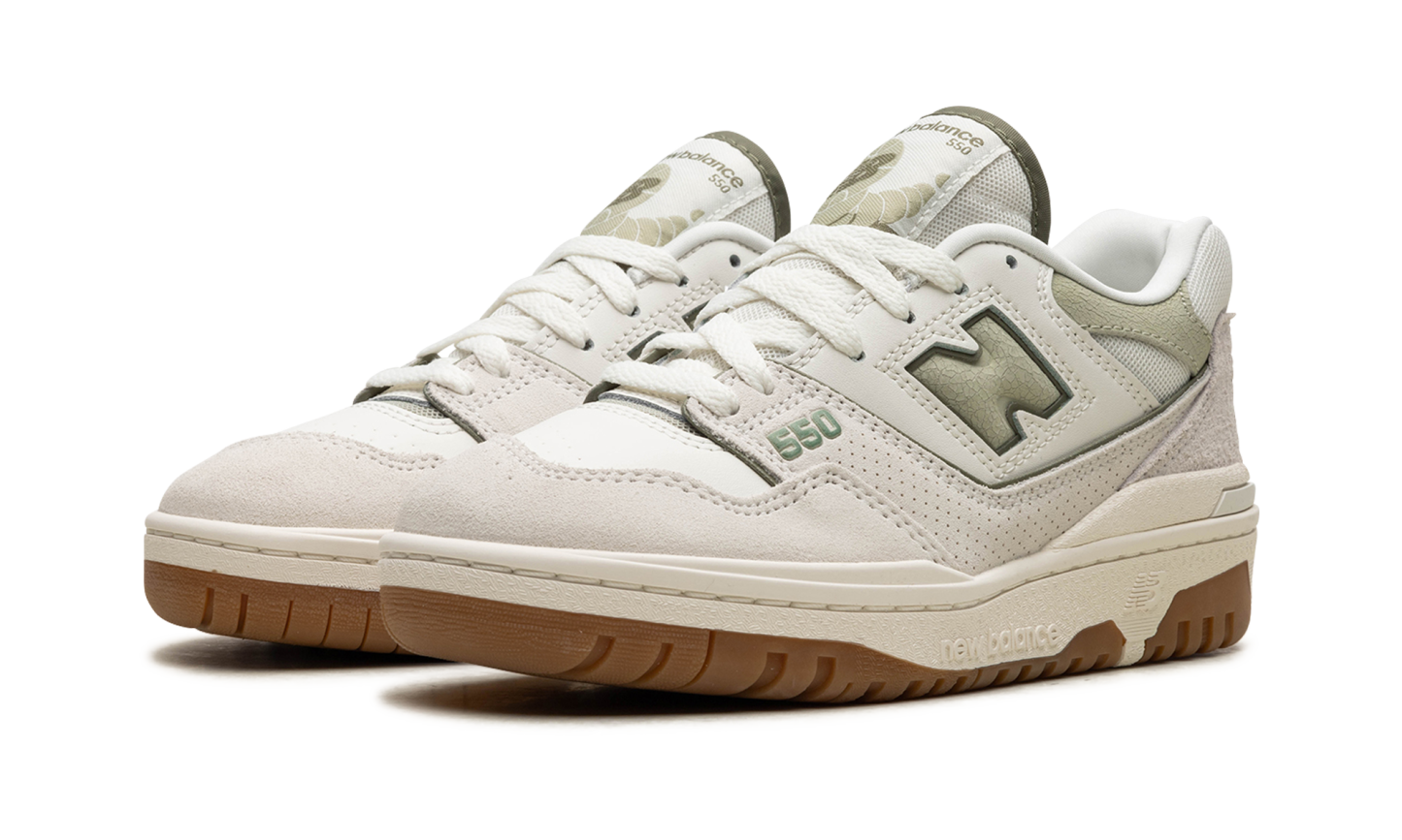 The New Balance 550 "White/Grey" for women is a coloration exclusive for women's retro basketball shoe conpicked for stretched clothing. The New Balance 550 "White/Grey" excels in portability, as it has a color palette of neutral and earth tons. White leather appears on the base, while grey suede and leather can be found on the forefoot and tailon, and on the bumper, respectively. A dusty olive green "N" logo appears on the sides and corresponds to the color of the leather overlayon on the neck. Additional olive details can be found on the "550" on the forefoot, "New Balance 550" on the tongue and the "NB" mark on the heelon. A white midsole and a rubber outsole finish the design.