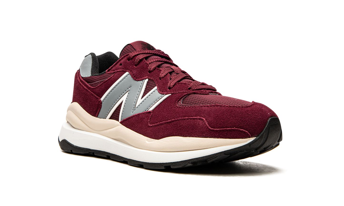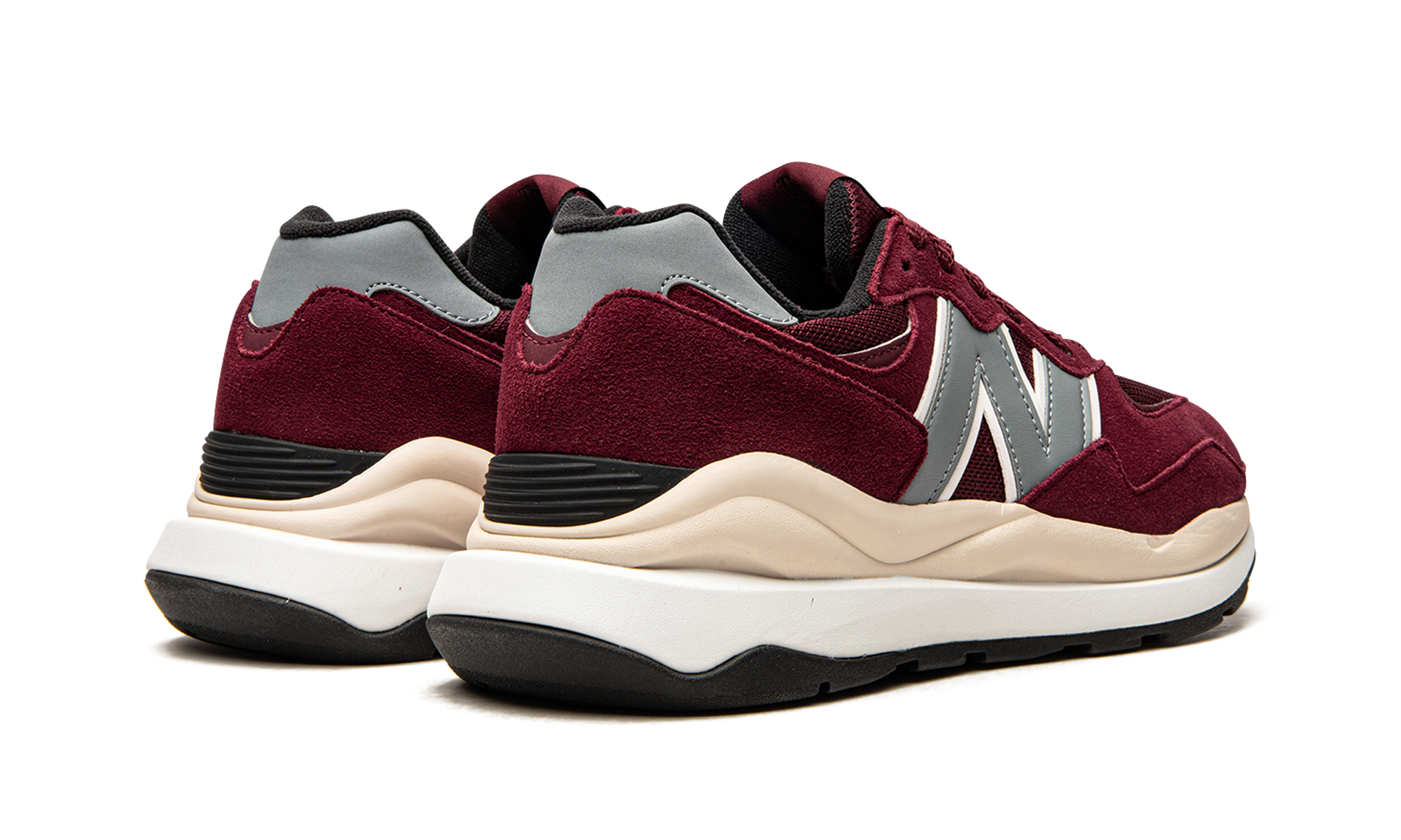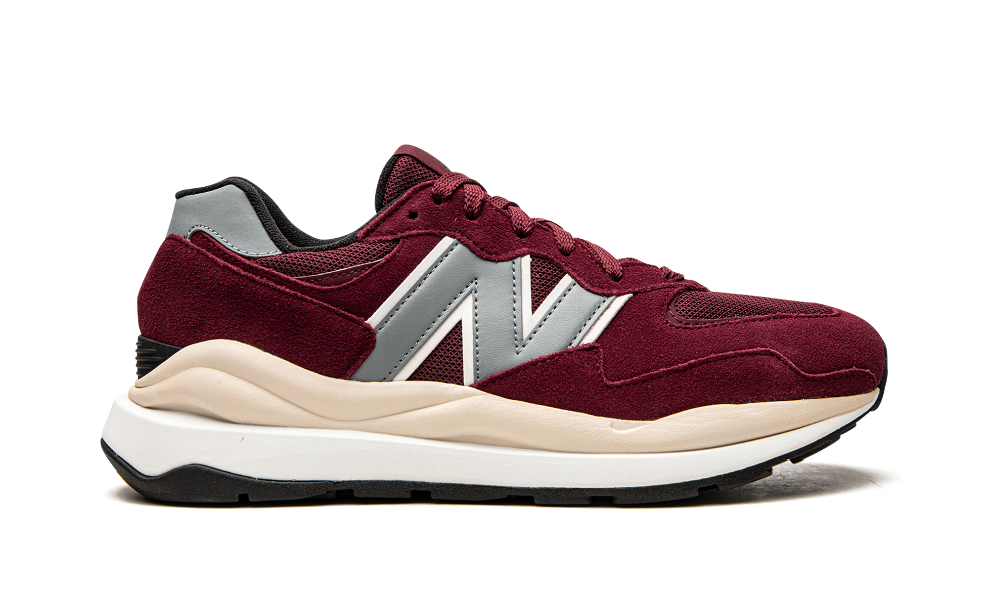 The New Balance 57/40 “Garnet” is an autumn-ready look for the retro-modern lifestyle shoe of the heritage shoe brand. The 57/40 silhouette joined the New Balance shoe collection in 2020 and is a tribute to the New Balance 574. The details of conception include a garnet mesh on the toe and neck and tonales suedeons overlays. A large reflective “N” logo is on each side. The black “NB” badge is printed on the nylon tongue labelon marron on the tonale mesh tongue. A reflective talon leg contrusts the appearance of the Garnet suede on the back of the shoe. A retro inspiredon cream foam midsole gives the shoe a resolutely vintage performance running shoe style look.