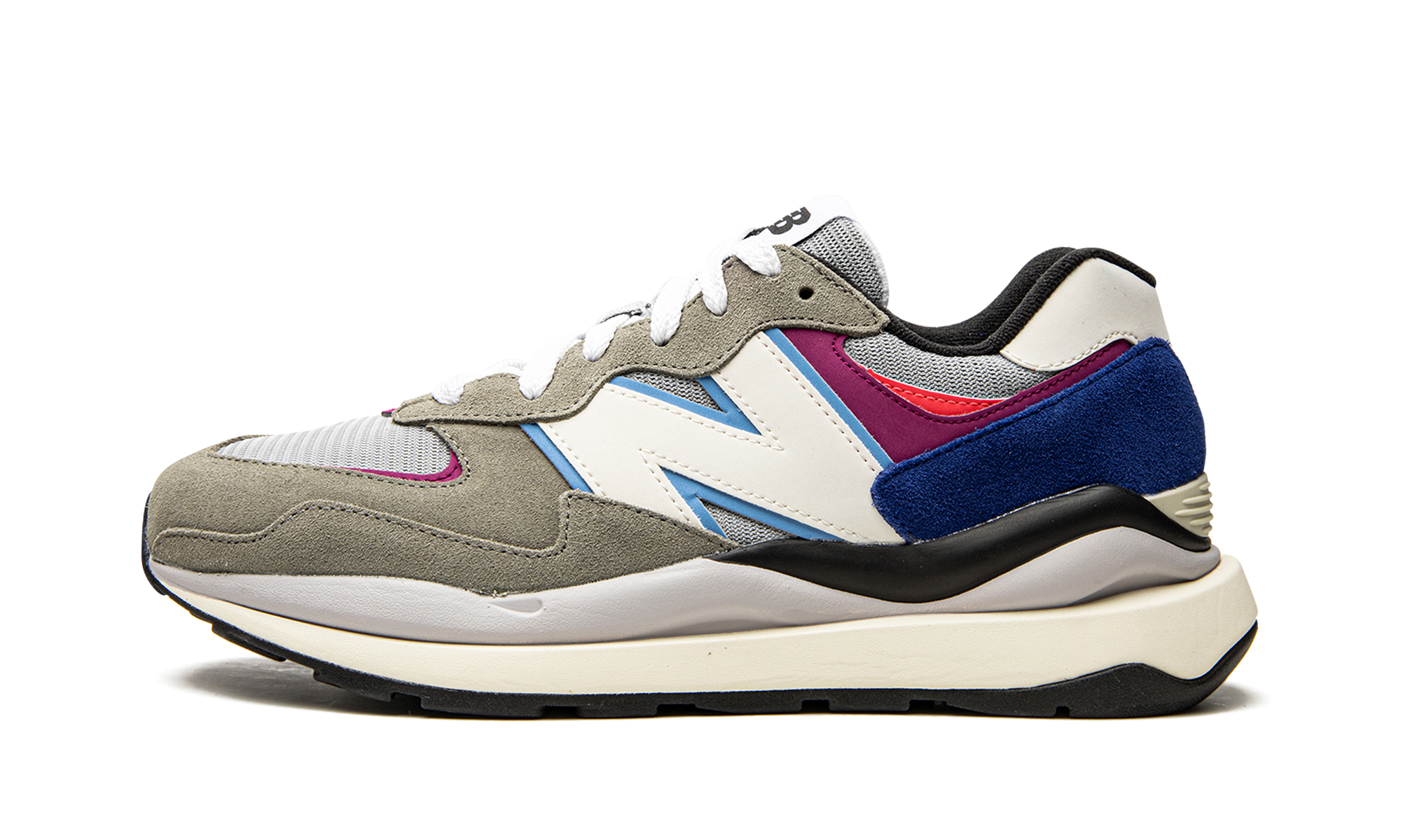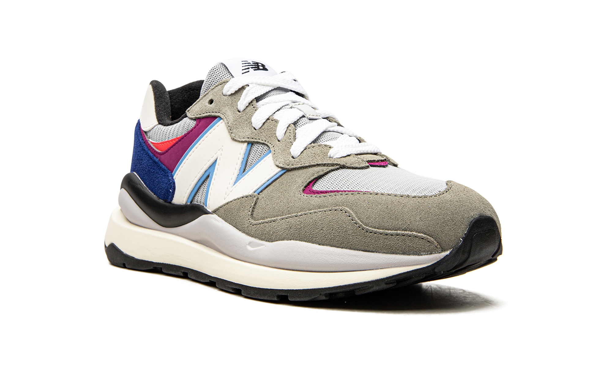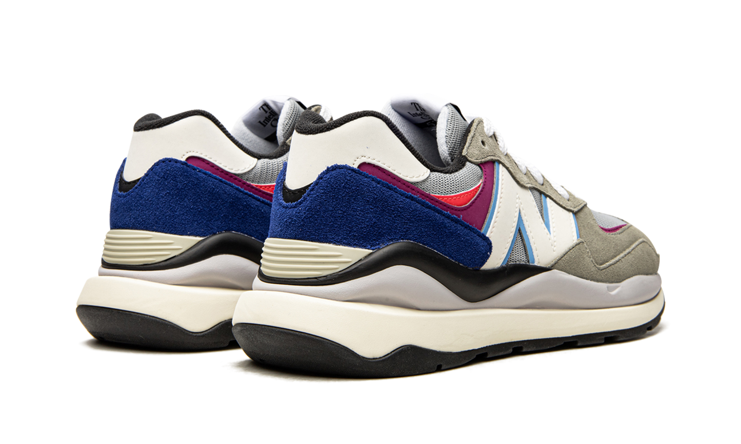 The New Balance 57/40 “Incubation Pack” is a grey-based color of the New Balance hybrid shoe that givesonne a temporary conlook to the New Balance 574. Based on the 574 model, the 57/40 made its debut in 2020 and features several design elements that give the shoe a futuristic look that is still the original 574 shoe. The color "Incubation Pack" is mainly grey in appearance, as it has a light grey mesh base and grey suede fonced on the toe cap, forefoot and eyelids. The light blue trim accentuates the oversized white "N" leather logoonborn on the sides and the magenta detail is on the superpositionon on the tallon. Additional splashes of color come in the form of an overlayon of navy blue suede on the heelon and pink details bornon on the neck. A midsole in wheat foam inspiredon retro byon gives the shoe a resolutely vintage look and performance running shoe style.