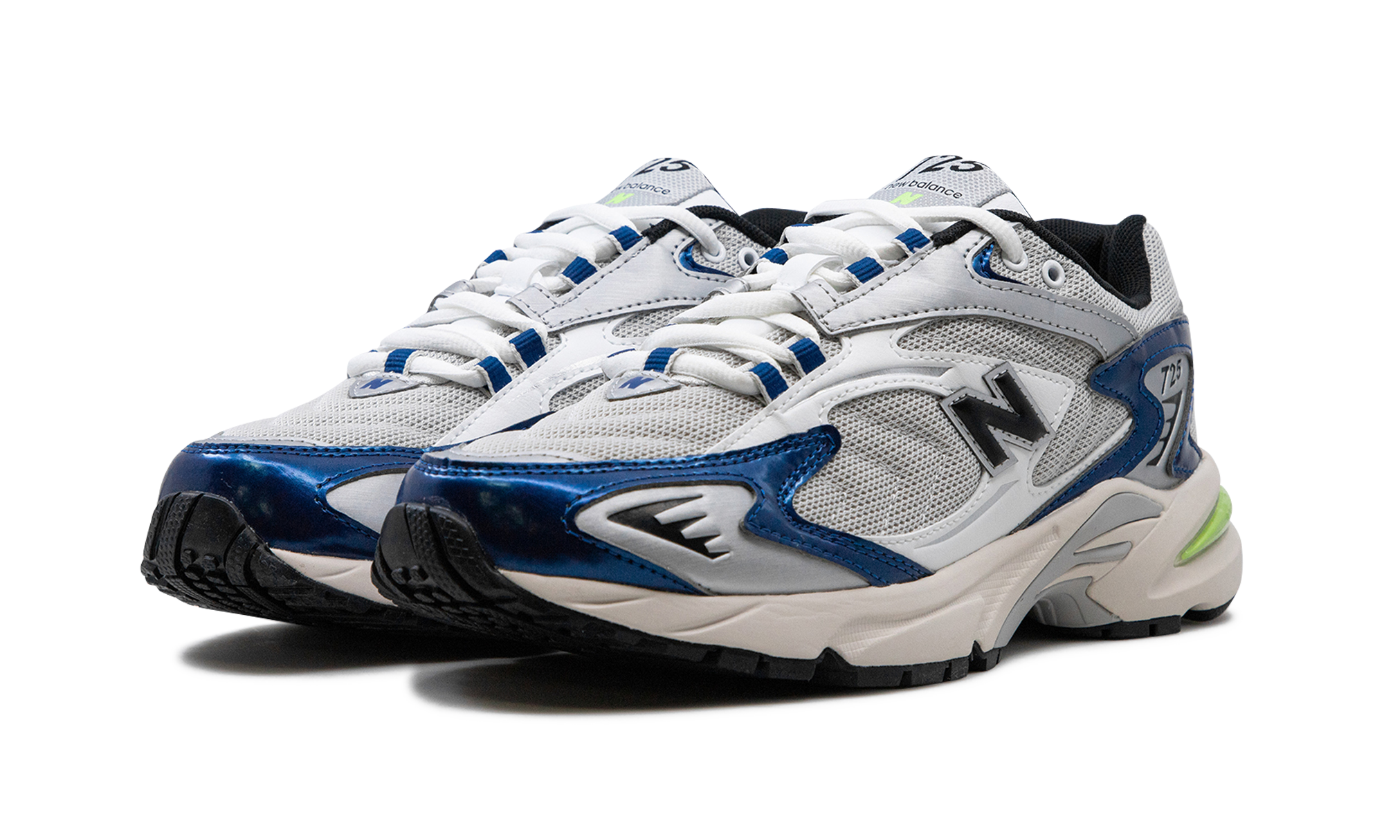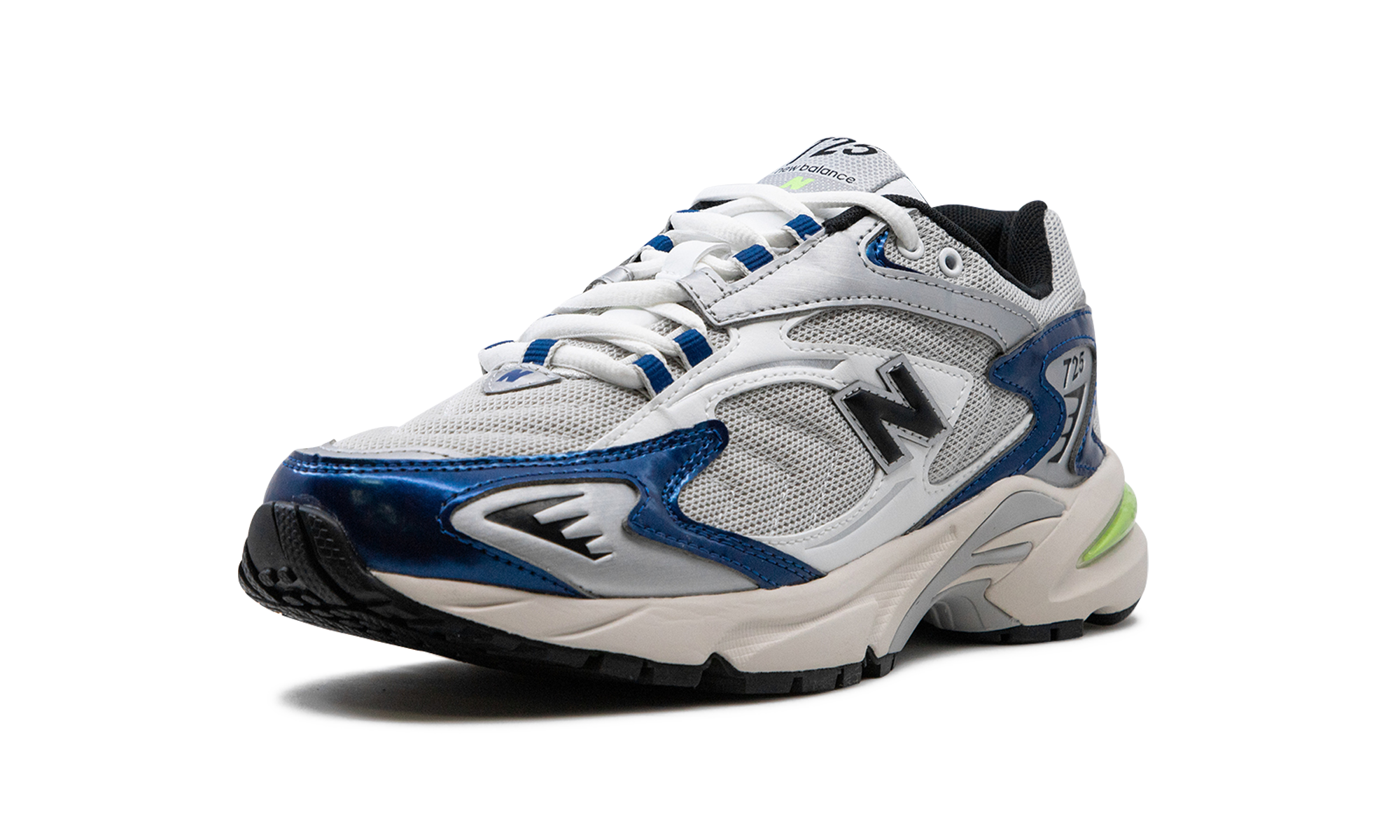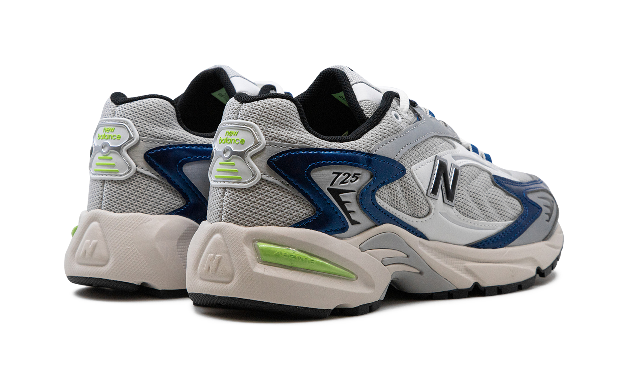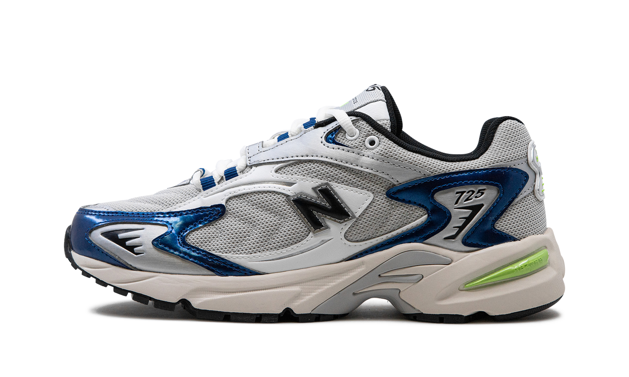 The New Balance 725v1 "Atlantic Blue" is a coloration of the retro inspiredon shoe with bright blue features. Inspired by the performance running shoes of the 2000s, the New Balance 725v1 has a Y2K-style design with its mesh base and leather ons overlays. Specifically, the model's "Atlantic Blue" color features a Grey Matter mesh base, white synthetic leather ons and Atlantic Blue metal ons on son design. A black “N” logo appears on each side of the shoe, while the “725” detail is visible on the side of the heelon and on the tongue. ABZORB cushioning from New Balance is integrated into the midsole for a strong conall day.