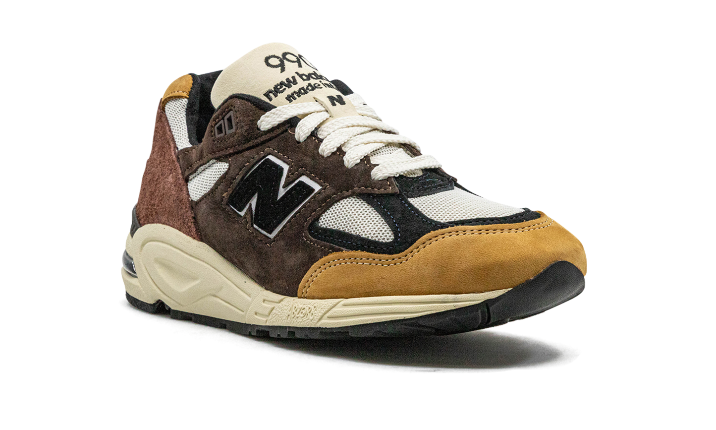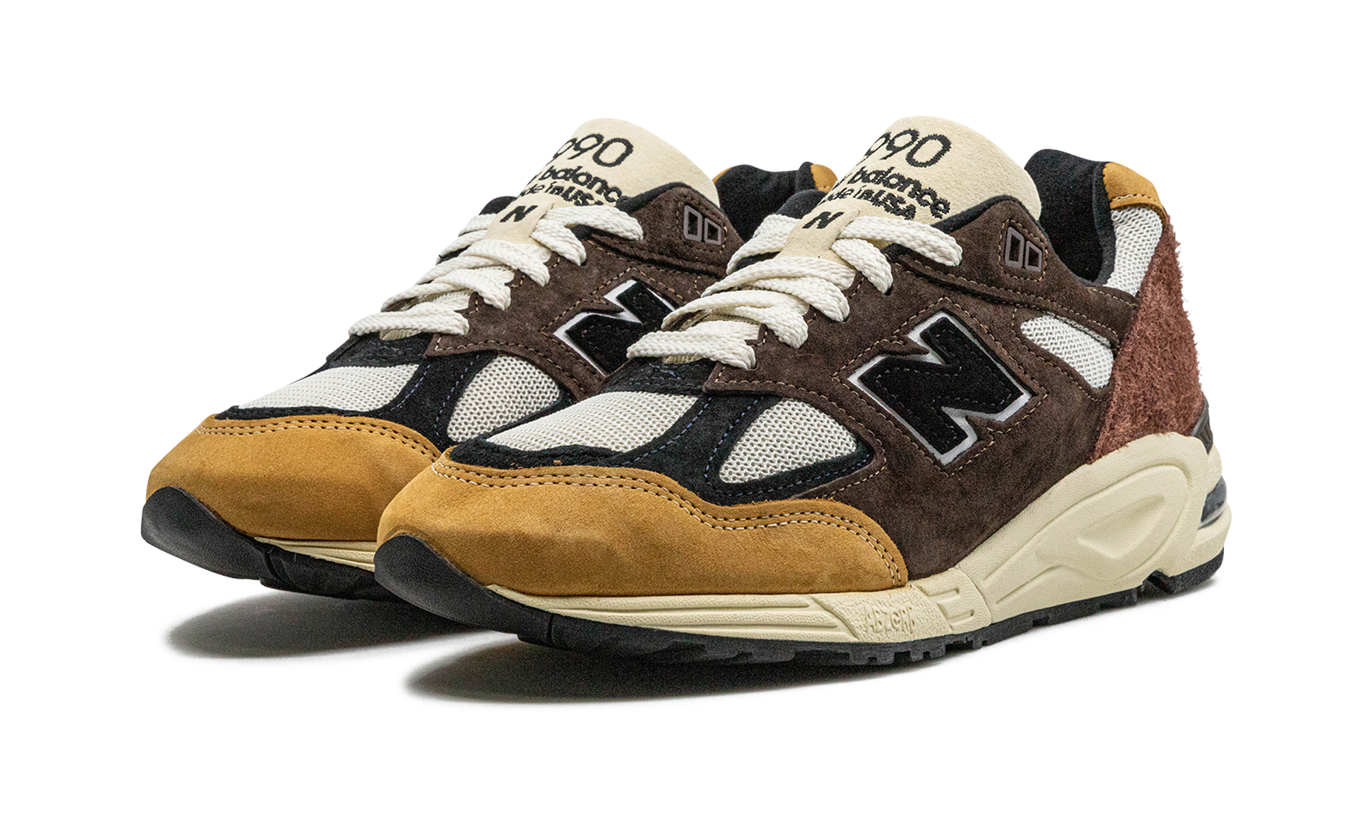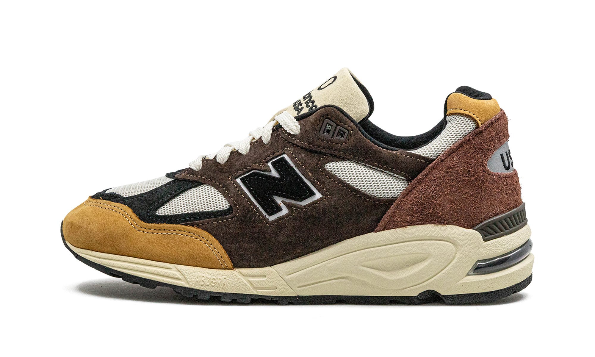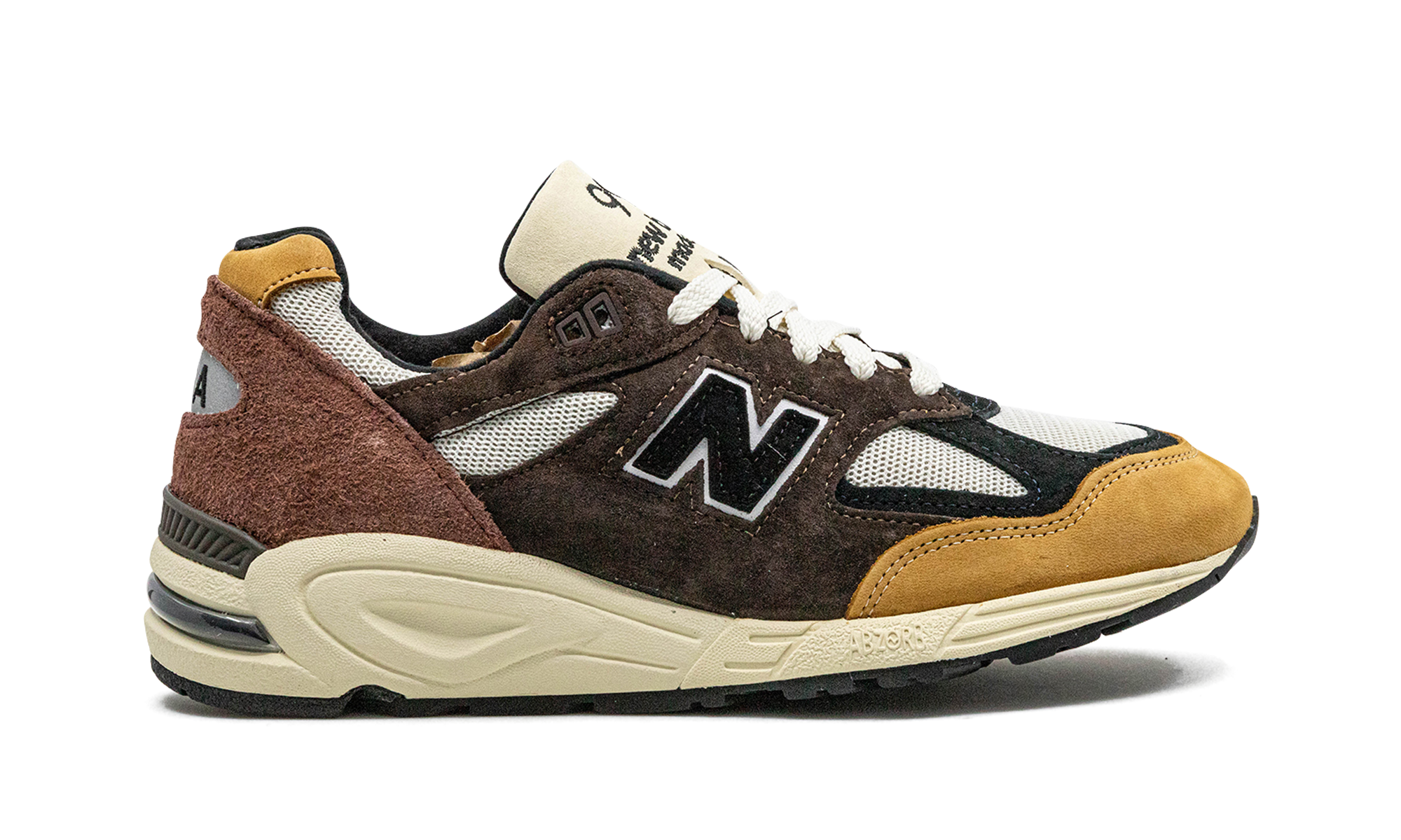 The New Balance 990v2 "Made In USA - Brown" is a colorway of the lifestyle shoe with marron accents. From the on "Made in USA" collection by Teddy Santis and New Balance, the 990v2 in "Brown" features a white mesh base with ons in brown pigtail. A navy blue “N” logo appears on the sides of the shoe while the “USA” mark is on the heelon. “New Balance 990 Made in USA” detail is displayed on the language. The rubber midsole in cream color dongives the shoe a look inspired by the return. Release date: April 27, 2023