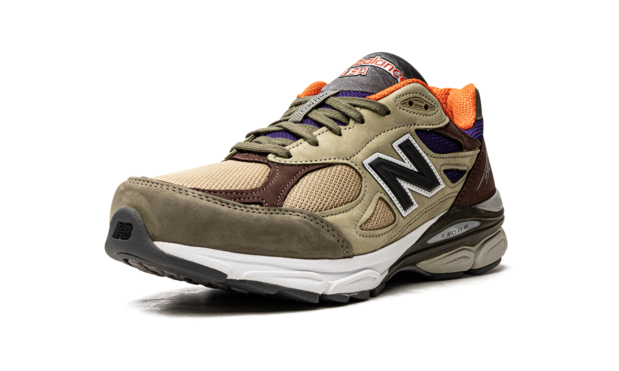 The New Balance 990 V3 Made in USA "Khaki" is a colorway of the popular designer shoe with unique design. From the Made in USA line of New Balance conpicked up by Teddy Santis, fondated by Aimé Leon Dore, the 990 V3 “Khaki” features a bronze mesh base with tonal leather ons overlays on both sides. The brown leather ons overlays are found on the toe, necklace and heelon. An olive green leather panel is located on the toe and heelon. The black “N” mark appears on either side of the shoe and the “990” detail is found in silver on the side of the heelon. The “New Balance” brand stains the tongue. Under the feet, the shoe's confortable and cushioned ENCAP midsole completes the look.