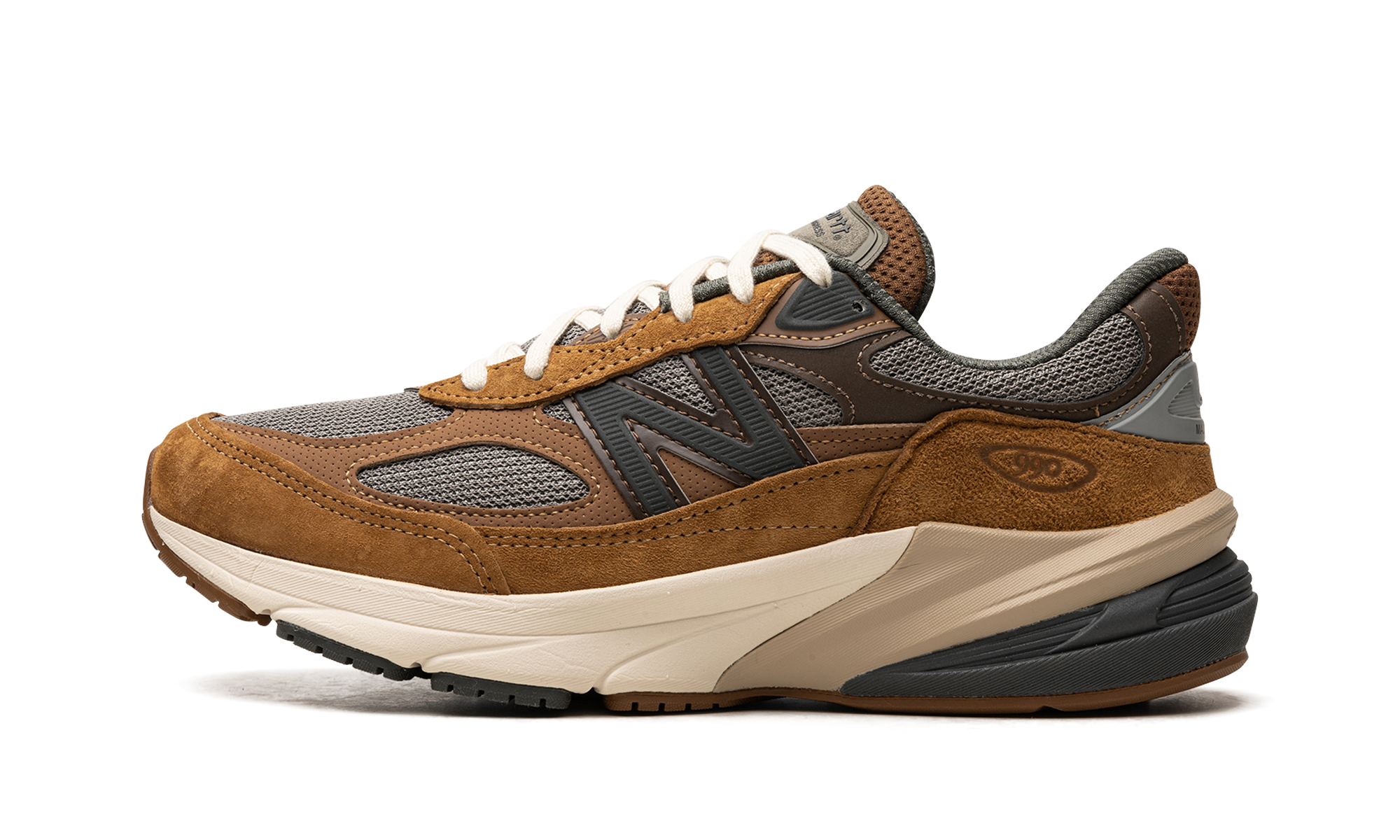 The Carhartt WIP x New Balance 990v6 "Sculpture Center" is a collaboration of the famous clothing brand patrimoniaux on a coloration of the lifestyle sports shoe inspired by the gyms of the neighborhood. A partnership that began in 2022, the marriage of Carhartt WIP and New Balance donne to the latter’s popular shoe draws a design inspired by the neighborhood gyms and the work mentality commonly found in them. As for the more specific design, the shoe has a grey mesh base contrusted with overlaysons in brown suede and brown leather. The green “N” mark appears on each side. A "Carhartt WIP" patch is visible on the language. Overall, the colour scheme is reminiscent of the colours of Carhartt WIP workwear. Release date: October 20, 2023