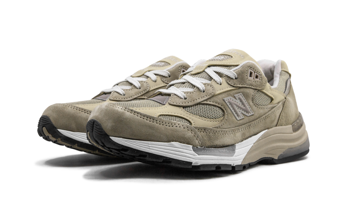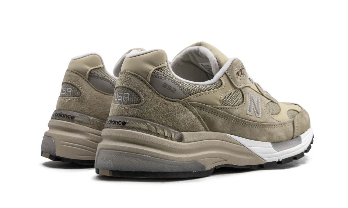 The New Balance 992 "Tan" is a premium lifestyle silhouette from the heritage shoe brand. The classic running shoe, part of New Balance’s Made in USA series, features ons soft neutral suede overlays on the forefoot, center panel, mudguard and heelon. A mesh base conchucked appears under the superpositionsons on the toe, forefoot and center panel. The silver "N" mark covers the center panel while the "992" detail can be found on the necklace. White embroidery "Made in the USA" detailing thanks to the language and a USA brand window appears on the tallon. New Balance's ENCAP and ABZORB technology is packaged in the sole and offers the wearer an unrivaled constrong all day.