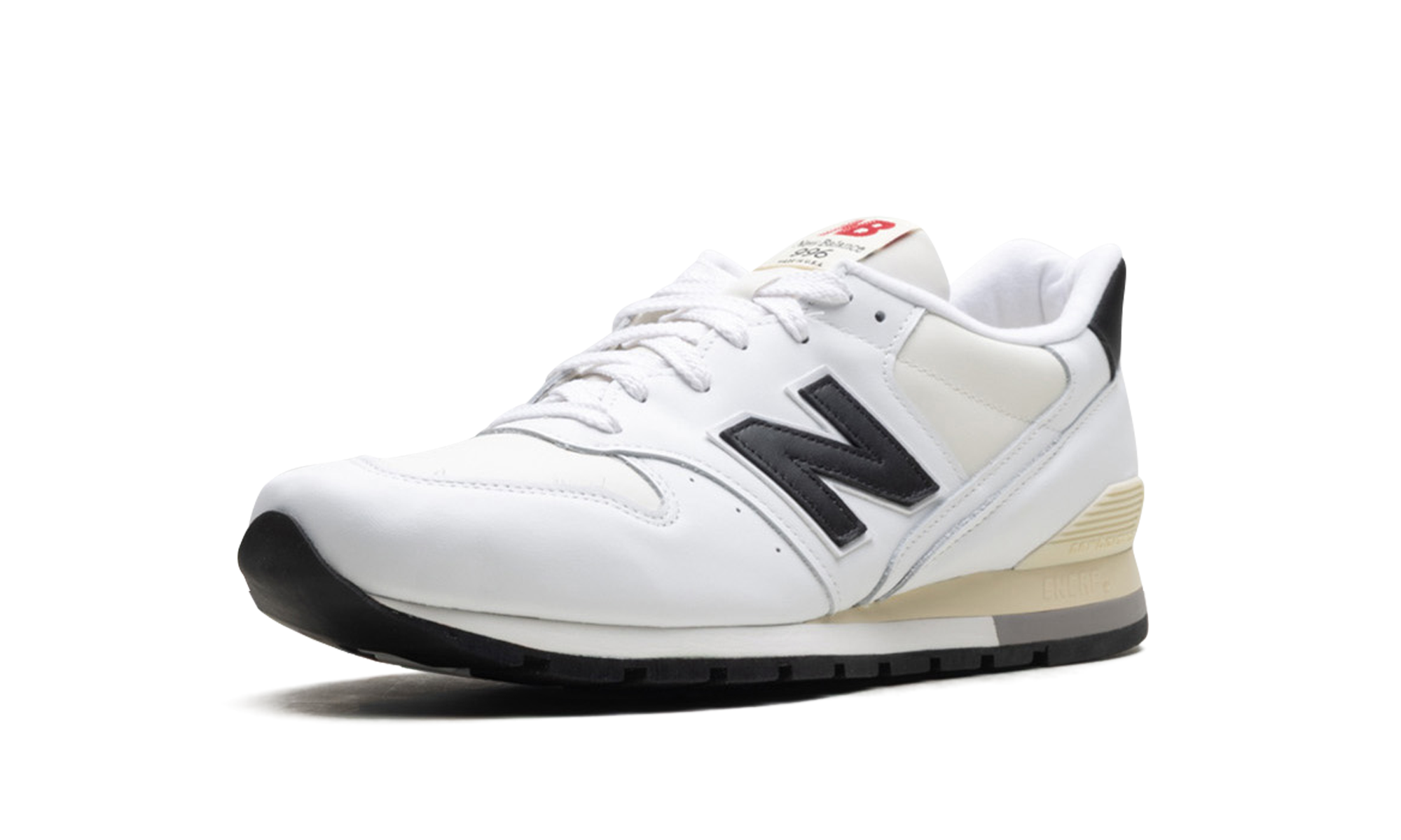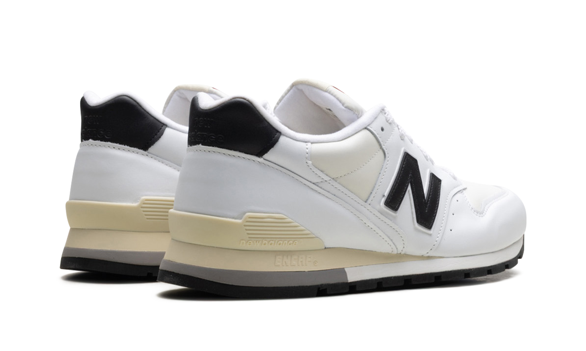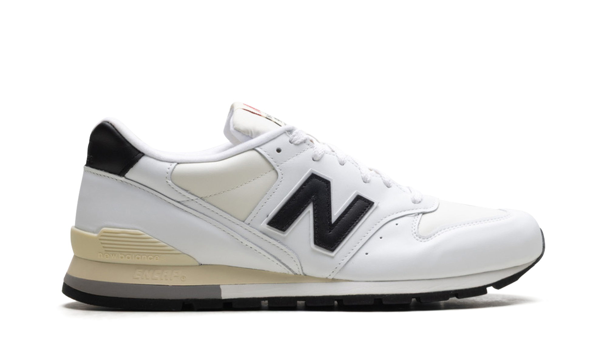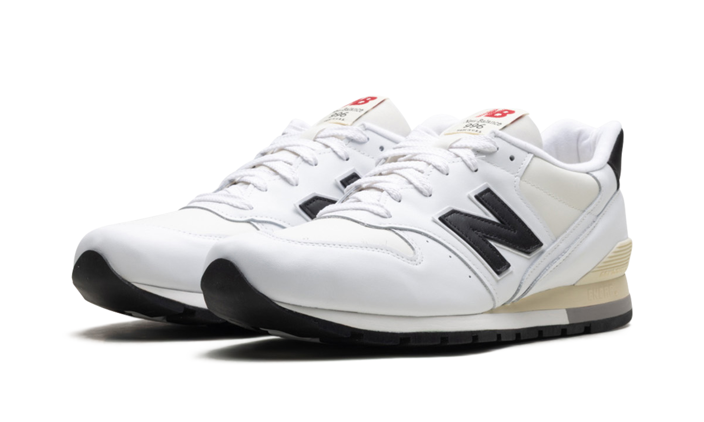 The New Balance 996 "Made In USA - White/Black" is an easy-to-wear lifestyle shoe color from New Balance's popular collection of American fabrication sports shoes. Led by Aimé Leon Dore’s fondateur and designer Teddy Santis, the New Balance “Made in USA” line puts premium materials on some of the brand’s most essential shoes. Here, the 996 in "White/Black" has a cream mesh base with white leather panels. A black leather “N” logo appears on each side of the shoe. Classic “New Balance 996 Made in USA” brand is seen on the language patch. Release date: September 15, 2023